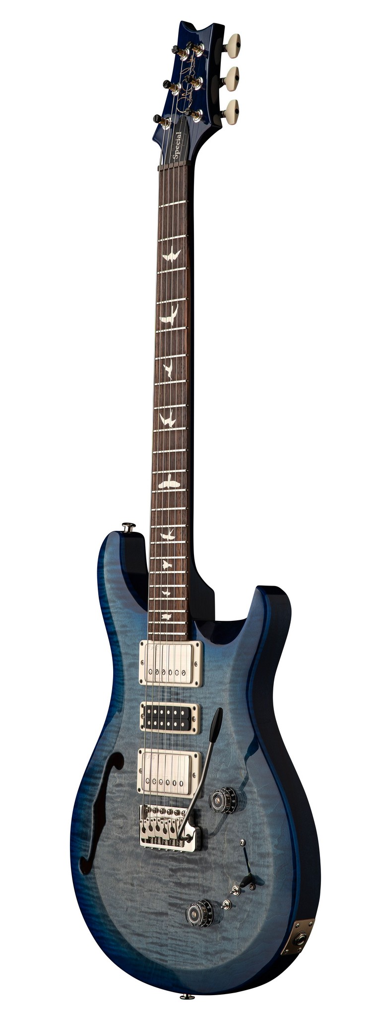 O corpo semi-acústico com tampo esculpido em maple e fundo e laterais em mogno adiciona uma qualidade arejada e profundidade natural ao timbre do instrumento, além de aumentar o sustain. O braço em mogno com perfil Pattern Regular, escala de 25″ e 22 trastes, juntamente com a escala em jacarandá e as inconfundíveis incrustações de pássaros da PRS, oferecem uma experiência de tocar confortável e suave. Equipada com tarraxas Phase III com trava e botões Wing Buttons, a S2 Special SemiHollow mantém uma estabilidade de afinação raramente vista em outros instrumentos. Com sua excepcional versatilidade tonal e ressonância semi-acústica, a PRS S2 Special SemiHollow é um instrumento dinâmico que convida os músicos a expandir seus limites criativos.