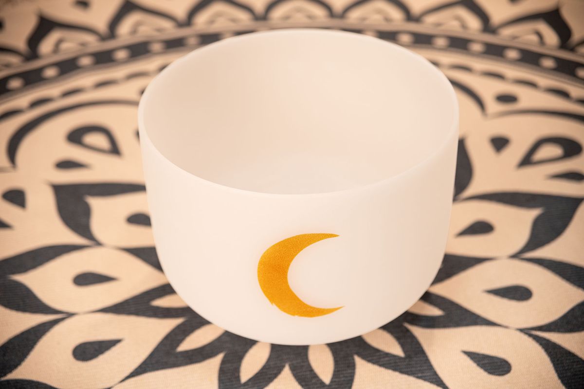 As Taças Tibetanas de Cristal Meinl Energia Sônica, afinadas planetariamente, são fabricadas utilizando os cálculos de Hans Cousto (A Oitava Cósmica) para corresponder às frequências do sol, da lua e dos planetas. Cada uma é afinada para produzir a frequência correspondente ao corpo celeste. Estas taças tibetanas de quartzo branco fosco, de alta pureza, criam uma aura muito agradável com seu som e design. Seu timbre esférico e duradouro se expande quando a taça tibetana é suavemente percutida ou friccionada, de modo que a energia é sentida em todo o ambiente. Todas as taças de cristal são entregues com um anel de silicone para evitar impactos e garantir a melhor ressonância. Você pode usar as taças de cristal para diversos fins: cura dos chakras, meditação, terapia sonora, yoga, aprimoramento do Feng Shui da sua casa, equilíbrio emocional ou até mesmo para decoração de ambientes. Frequência lunar sinódica: 210,42 Hz representa criatividade frutífera, calor no coração e acesso à nossa alma. Sua frequência fortalece nossa intuição e empatia pelos outros. Chakra: Chakra Sacral